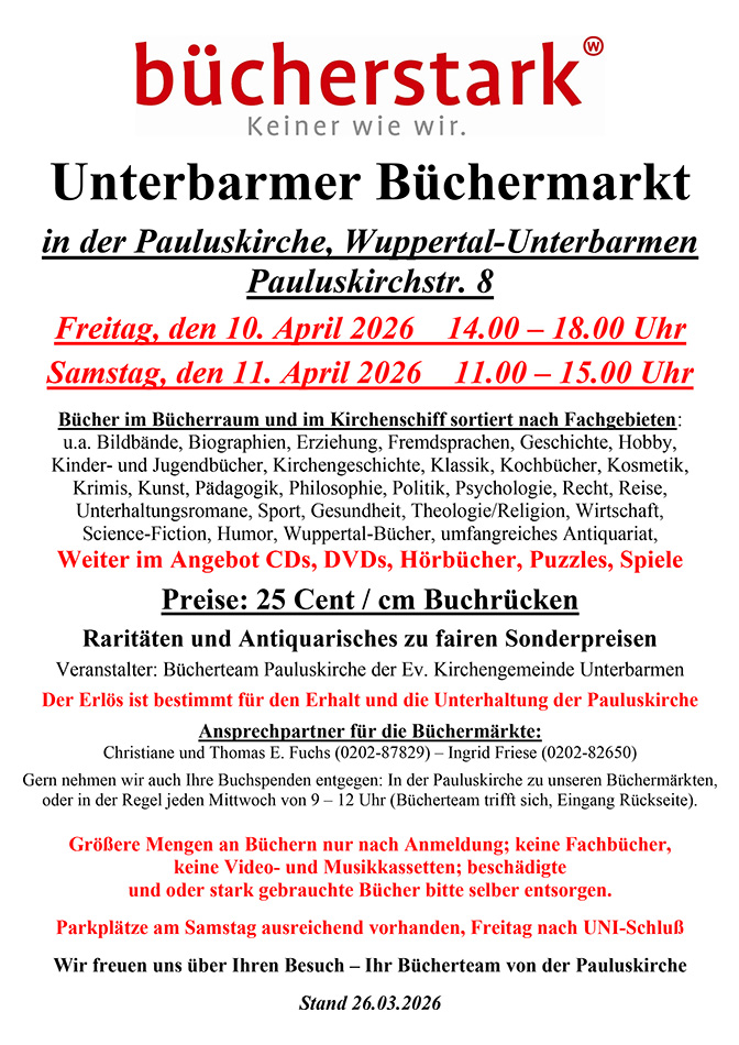 Veranstalter: Bücherteam Pauluskirche der Kirchengemeinde Unterbarmen